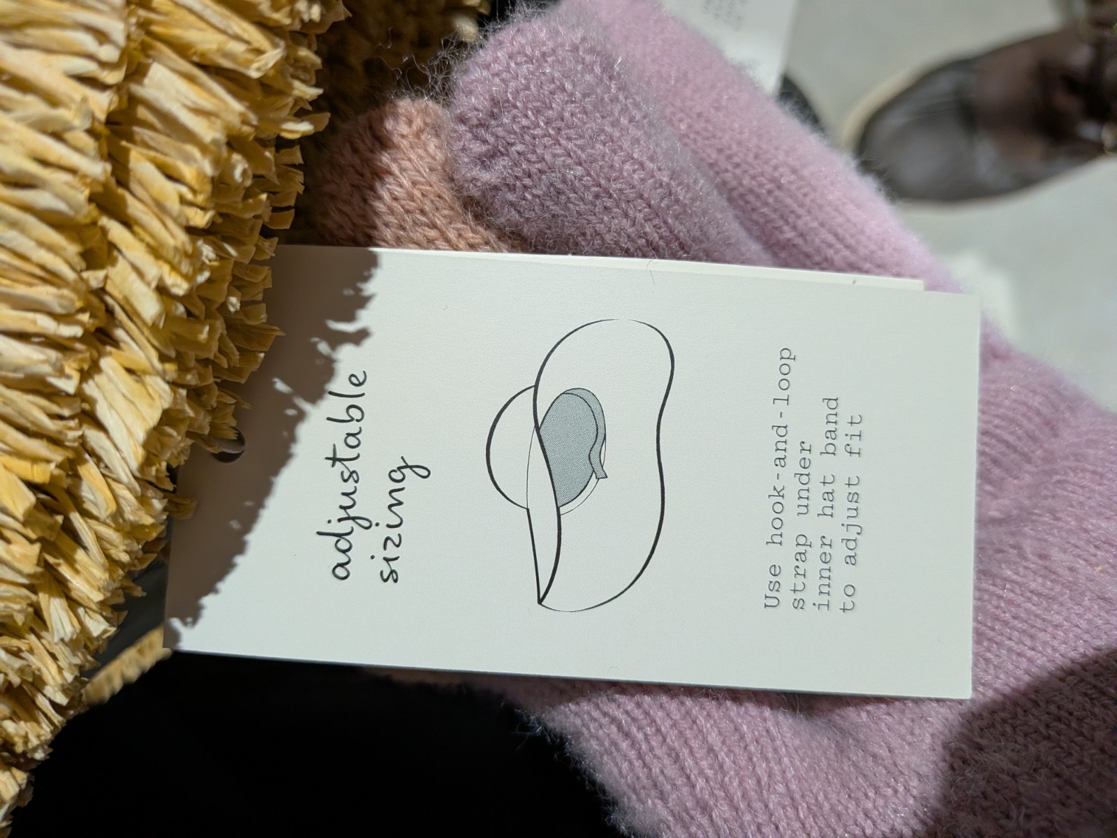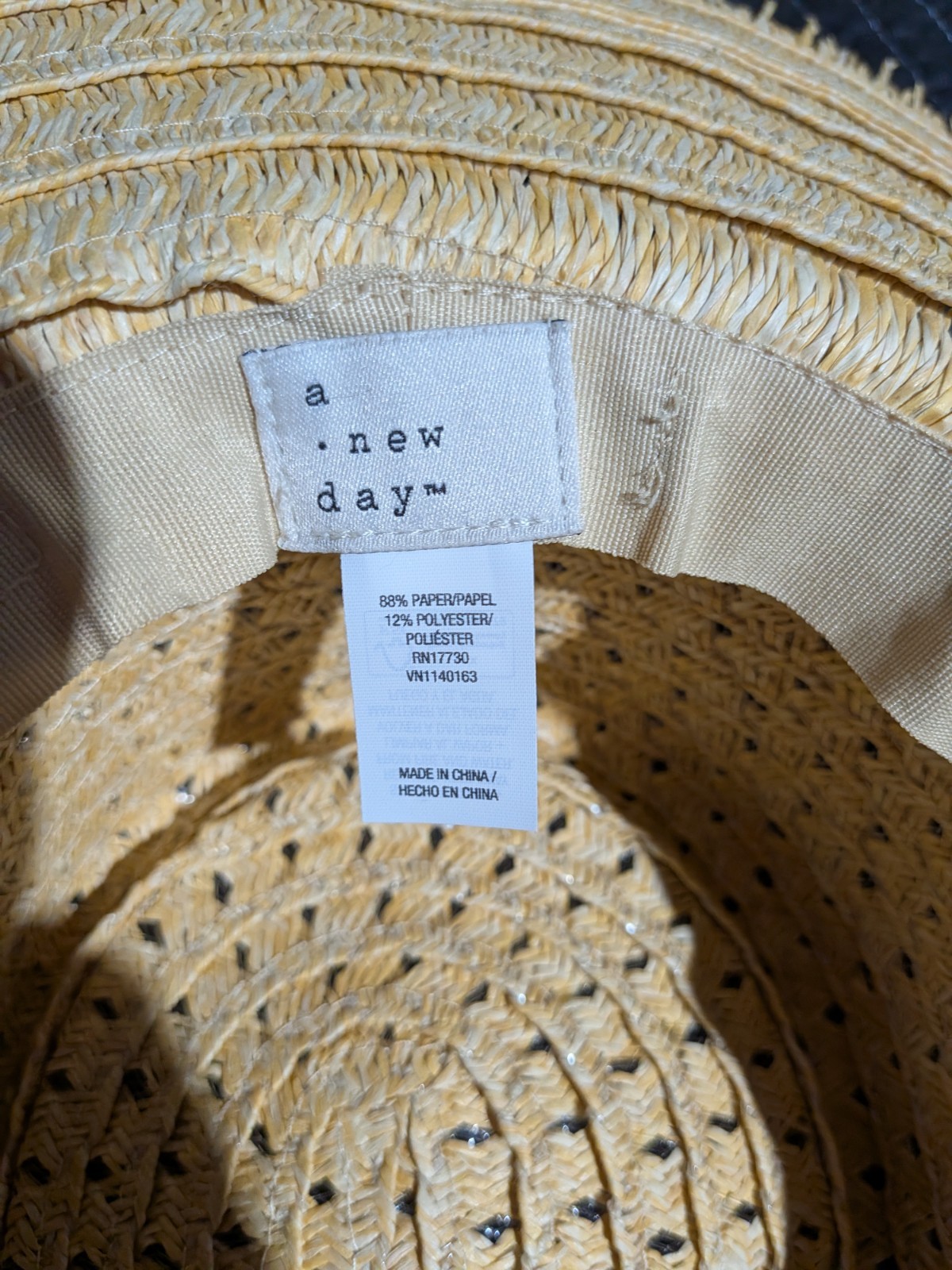A new day woven tan sun hat with adjustable sizing strap.
