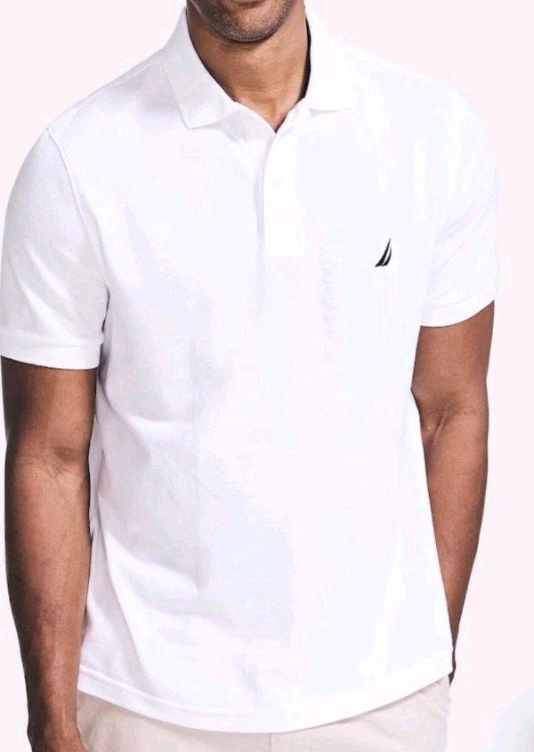 This brand new Nautica men’s classic fit polo in white, size small, is made from 100% cotton, making it breathable and perfect for casual occasions during the summer, fall, and spring seasons. The polo features a collared neckline, short sleeves, and a spread collar design. With the Nautica logo as an accent, this polo is machine washable and an ideal addition to any man’s wardrobe looking for a stylish yet comfortable option in men’s clothing.
