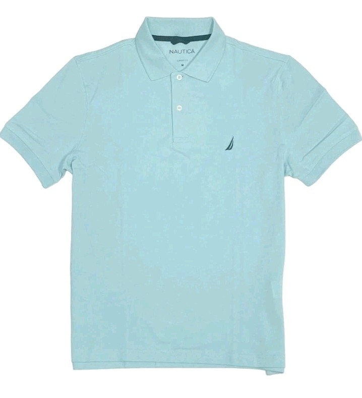 New Nautica Mens Classic Fit Polo Harbor Mist Blue Size Small 100% Cotton